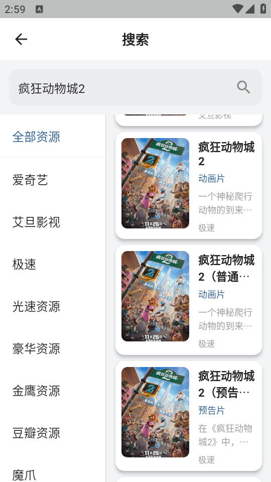 4、可以看到有多种平台的资源,可以根据需要选择一个观看。