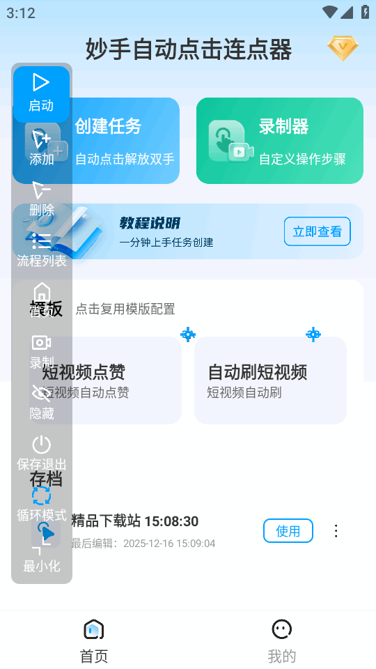 可自由选择操作方式相对较简单的一款自动连点器工具,妙手自动点击连点器app可免费使用,能快速开启双击,单击,连点等操作,不用登录可直接使用,自由设置连点器效果,帮你解放双手,同时支持智能录制功能,多种场景适用,可以管理你的操作流程列表。