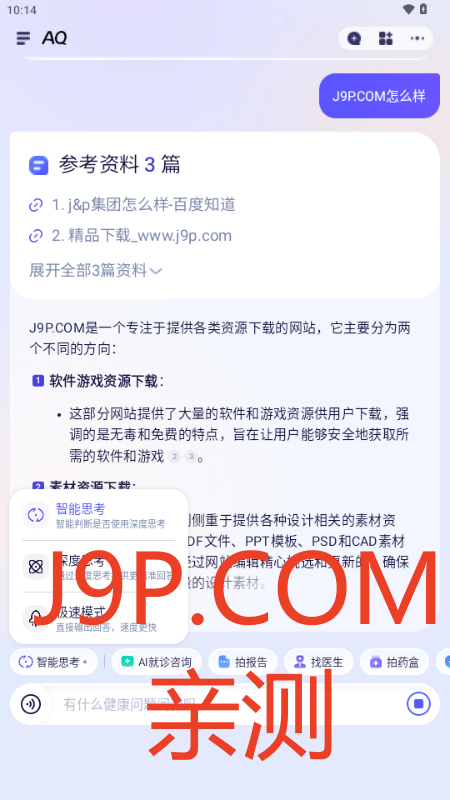 AQ最令我满意的是它的专业性和全面性。它不仅能够像真人医生一样追问症状细节,还能解读复杂的体检报告、识别药品和皮肤问题。当我输入健康问题时,AQ会给出详细且引用了权威来源的回答,而不是泛泛而谈。特别是“拍图问诊”功能非常实用,拍照就能获得专业建议,对不擅长文字描述的长辈尤其友好。