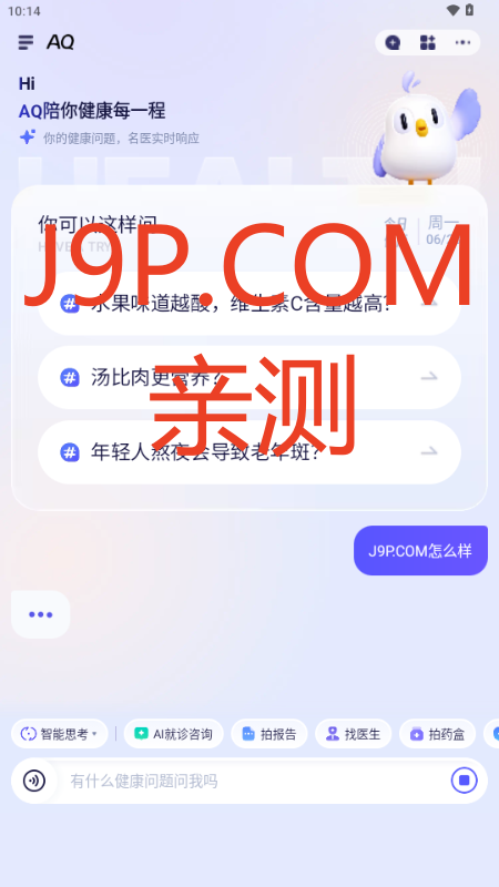 总的来说,AQ以其扎实的功能成为了我日常生活中值得信赖的健康管家,让我远离了网络上鱼龙混杂的健康信息。如果你正在寻找一款靠谱的AI健康应用,AQ值得一试。