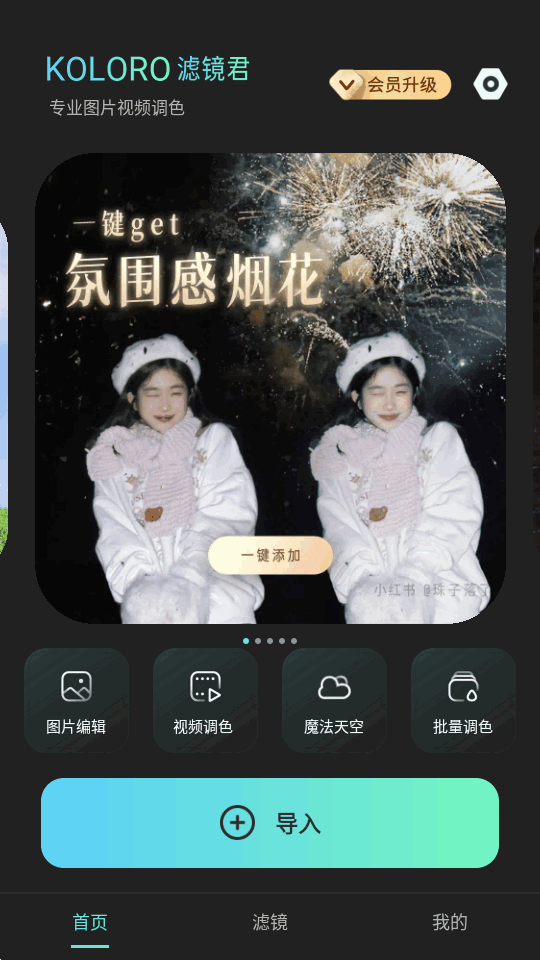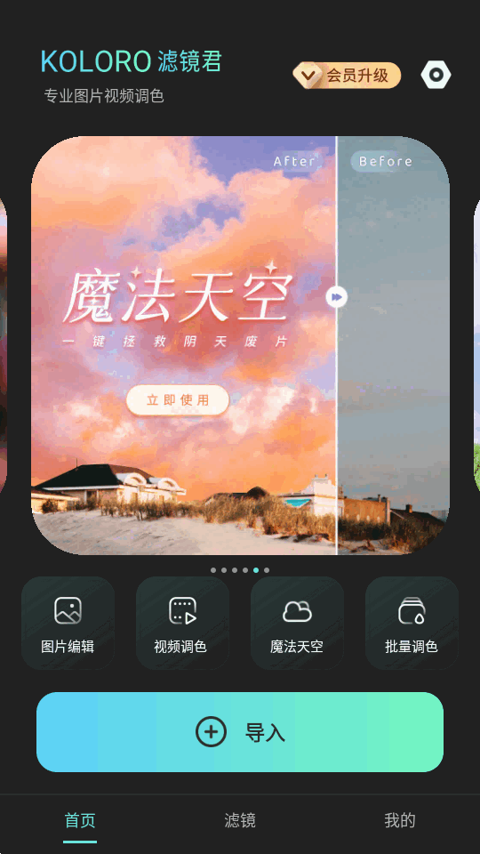 内置1000+滤镜可以免费使用的图片视频修图工具,Koloro滤镜君旧版免费版本,支持在线图片编辑,视频调色,魔法天空和批量调色功能,操作非常方便,可以快速专业的为图片视频调色加滤镜,很简单好用。