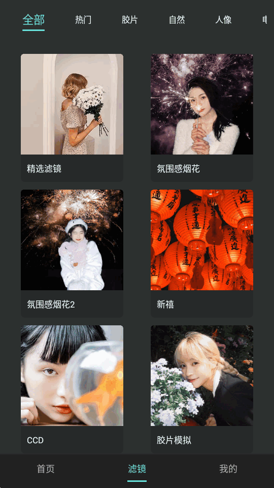2、每个分类都有很多精美的滤镜,随便选择一个试试看;