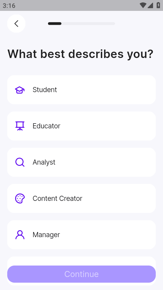 2、进入软件先要做个小问题调研,说一下你的职业。