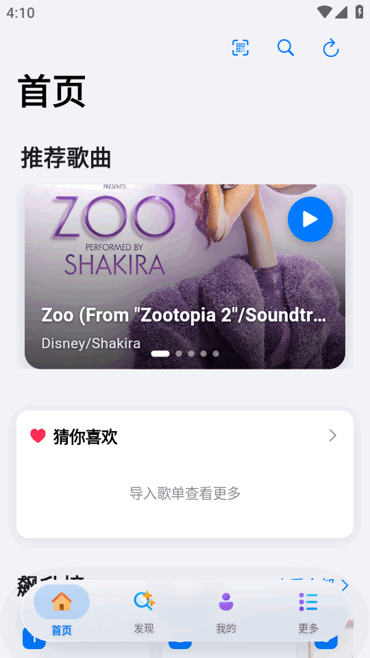 1、在首页猜你喜欢处点导入歌单。