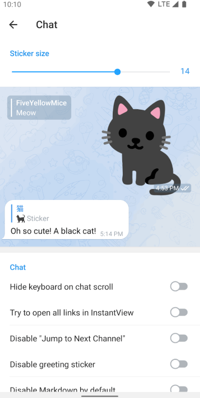 Nekogram是一款第三方客户端,虽然修改不多,但功能实用且优化显著。在外观上,它允许用户使用自己的头像作为抽屉标题背景,支持系统表情符号,并可让状态栏透明,提升了个性化体验。聊天功能方面,用户可以调整贴纸大小。需要的可以在精品网下载此软件。