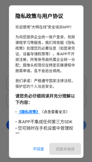 1、打开大明在线app,点击同意隐私政策与用户协议