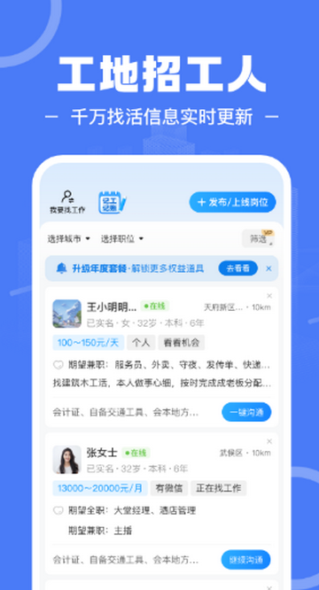 4、适配场景广,覆盖短期项目、长期用工、班组招聘等多种建筑用工需求。