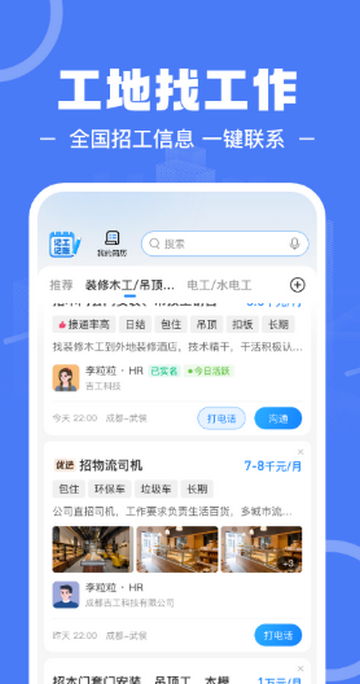 建筑招工是一款专为建筑行业打造的移动招聘服务平台,集成招工信息发布、求职者匹配、记工记账、考勤管理等实用功能,覆盖项目施工到班组管理全流程需求。平台依托数字化手段,打破传统招工的信息壁垒,有效提升建筑企业与工人的匹配效率。