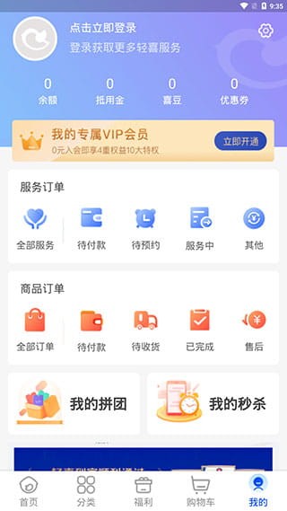 3、而在【福利】页面,我们还能看到各种福利活动,如限时秒超值服务、新人福利等。