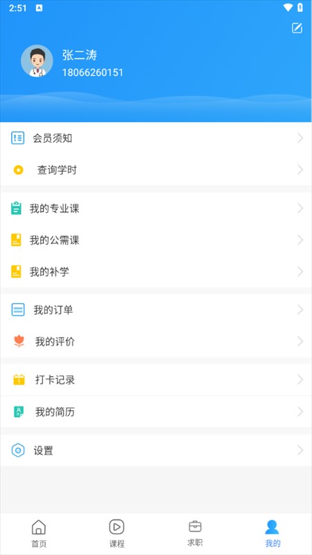 2、在课程界面下,我们能够查看自己已经报名的一系列课程。