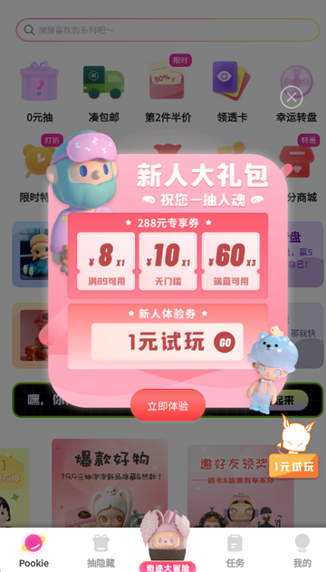 扑奇潮玩盲盒 App 汇聚海量优质潮玩商品,主打各类卡通风格盲盒抽取。随机开奖带来满满刺激体验,每日上新的潮玩好物更添惊喜。平台贴心准备新人礼包与优惠券福利,轻松开启潮玩收集之旅。快来下载,解锁盲盒拆封的乐趣吧!