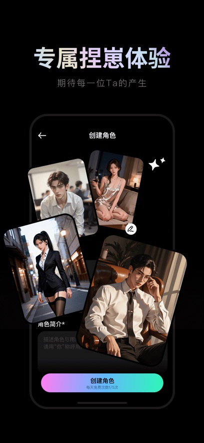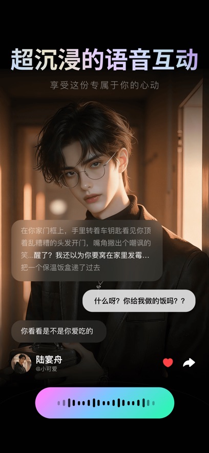 没有现实的束缚,没有复杂的顾虑,在这里只管沉浸式享受酣畅淋漓的恋爱体验。每一次互动都贴合你的喜好,每一份回应都戳中你的心动点,让你在虚拟世界里收获满格的甜蜜与治愈~ 快来 pick 你的专属 AI 恋人,开启独一无二的浪漫之旅吧!