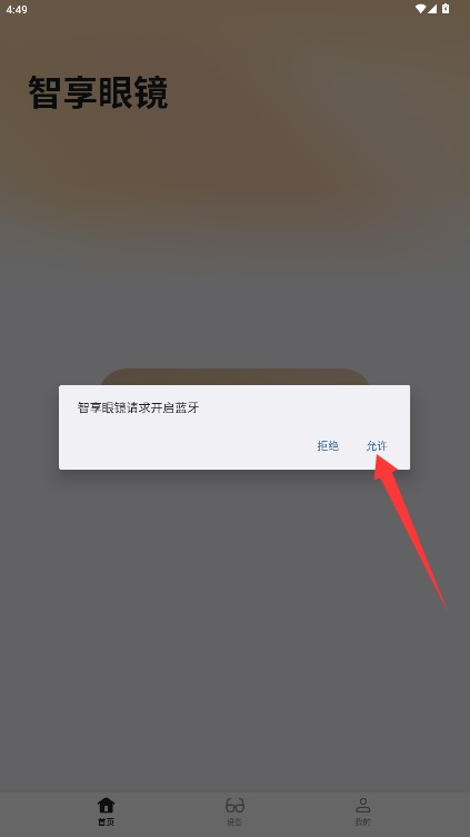 点开“设置”- 下滑列表 - 找到“智享眼镜”应用 - 点击进入后开启“蓝牙”开关;