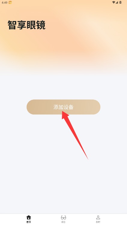 4、在设备管理界面点击"添加设备"选项,按照指引完成智能眼镜的蓝牙配对连接。