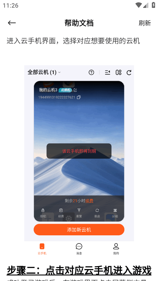 2、操作简单,在安装好该应用后,进入云平台领取云手机,然后就能挂机玩游戏了。