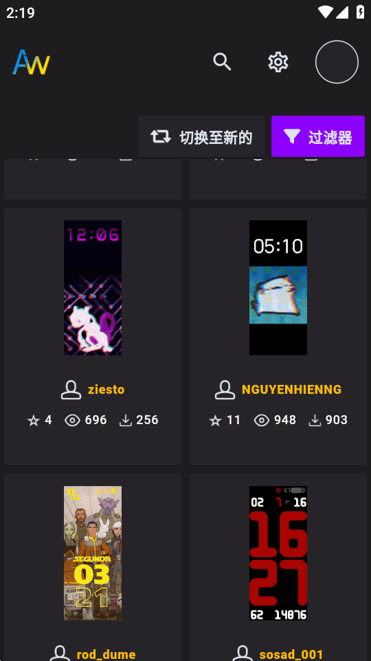 4、接着应用就会筛选出适合你手表的表盘资源,你也可以通过搜索方式进行搜索,然后点击下载按钮