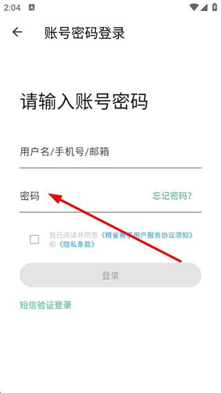 4、账号密码登录页面需输入用户名或手机号、邮箱及对应密码,勾选相关协议后点击登录,若忘记密码可通过对应选项找回。