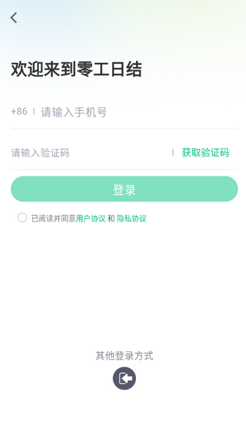 1、打开零工日结app,点击同意隐私政策