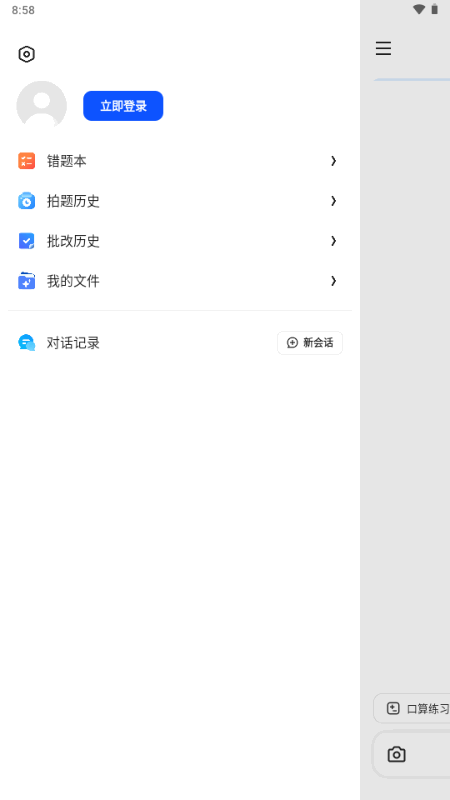 5、回到夸克老师首页点击左上角三横,可以进行拍题解答与作业批改,还可以查看往期的搜索记录