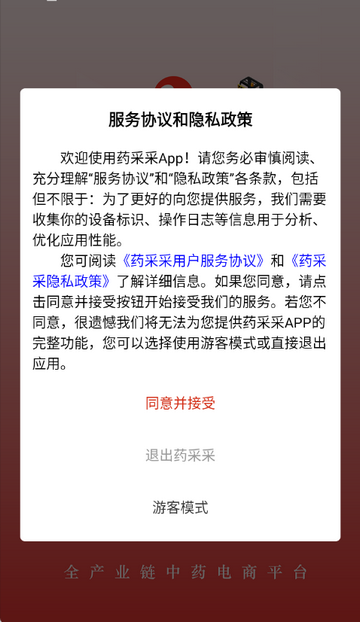 1、打开药采采app,点击同意隐私政策