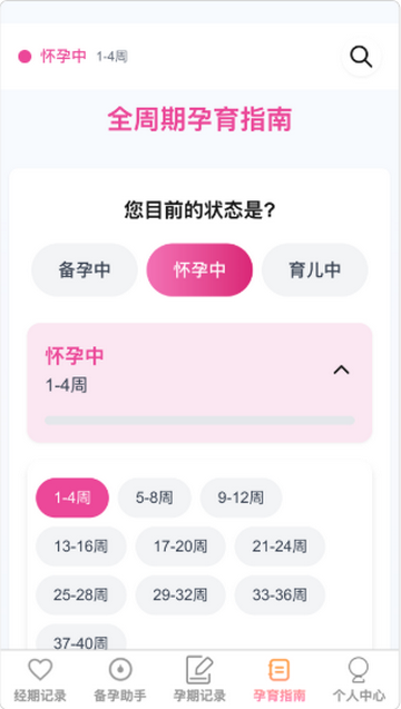 3、功能全面集成:集记录、预测、提醒、学习于一体,一站式满足母婴人群在周期管理、备孕、孕期及育儿期的多样需求;