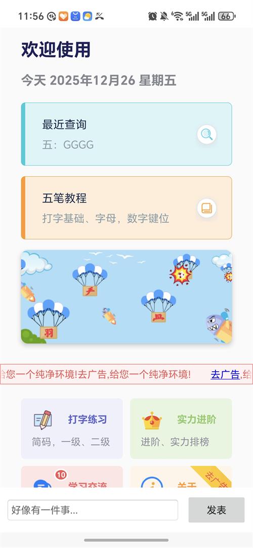 2、协助我们准确的进行五笔打字练习,让我们的打字越来越熟练。