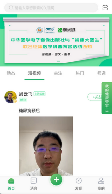 能康大医生APP是集医生社区、专业培训、患者教育于一体的医疗健康交流平台。支持医生发布图文、视频、直播动态,助力搭建专业IP、同行互动,还提供直播与点播课程方便自主学习;同时面向公众普及健康知识,提升患者健康素养。平台以实名认证保障内容权威,明确不提供诊断和处方服务,合规又安全,高效连接医患科普需求。