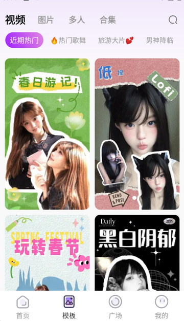4、点击模版,查看近期热门拍照姿势