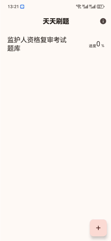 2、进入软件后,点右下角的+号选择导入你的题库。