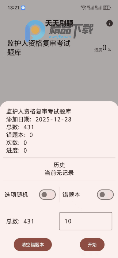 1、下载安装好软件是没有题库的,需要自己下载准备好要刷的题库。