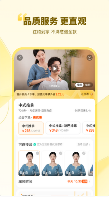 往约app是一款专业正规的上门推拿服务软件,打破传统到店模式,支持一键预约、技师上门,开启便捷高效的保健新方式。服务覆盖全国60+城市,最快1小时极速响应,累计服务超百万用户。平台涵盖中医推拿、精油养生、理疗保健等多元项目,感兴趣的朋友快来体验吧。