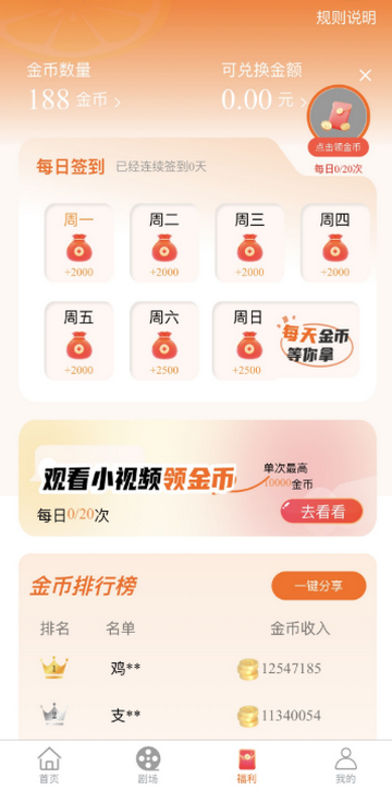5、每日观看视频赢得金币