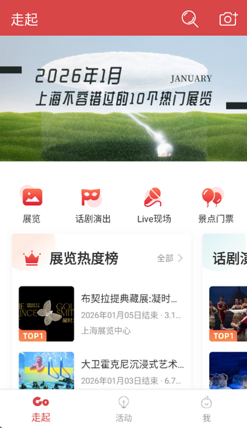 1、在走起首页点击展览选项,进入展览活动列表页面