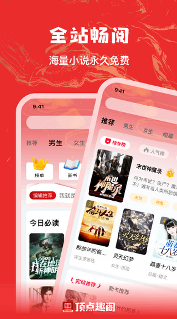 1、下载安装并打开顶点趣阁后,在首页中有众多小说推荐