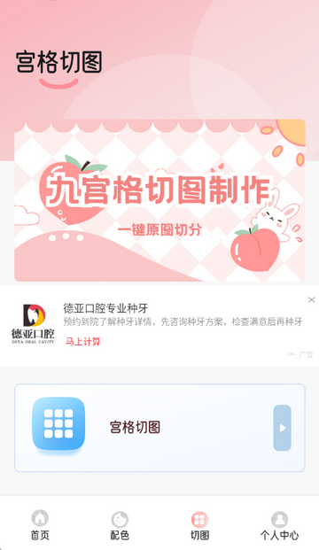 2、在宫格切图页面,点击宫格切图选项,可进入相机胶卷选择图片