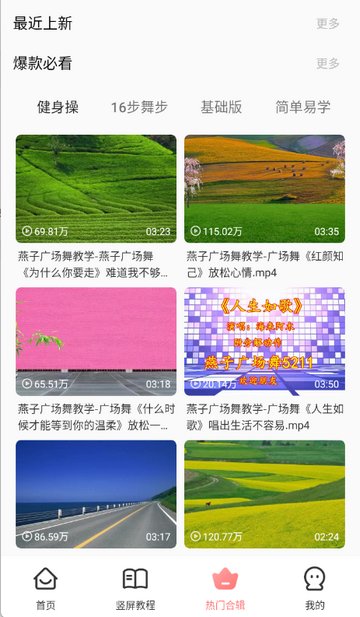 1、在热门合辑选择健身操,浏览广场舞教学视频