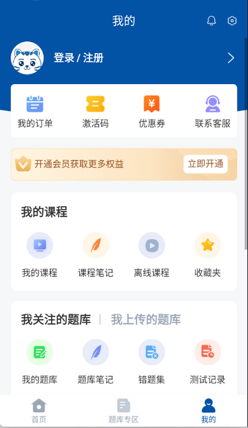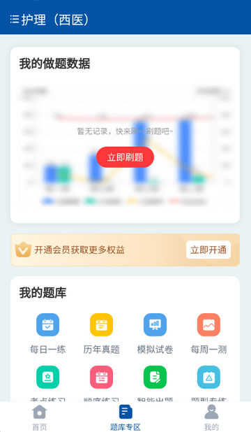 3、点击题库专区开始每日一练/模拟试卷等