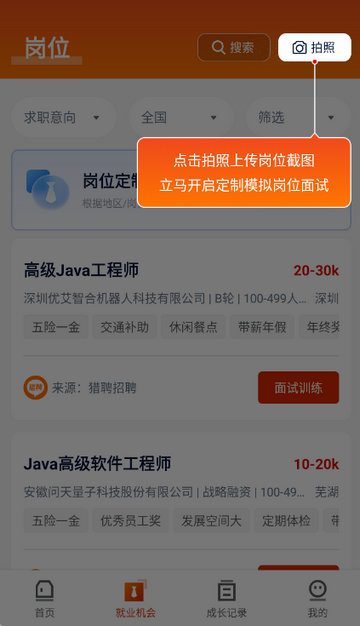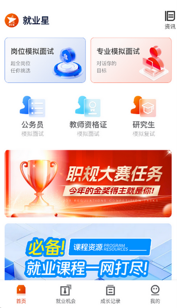 就业星app是深圳市即构科技有限公司推出的就业能力提升服务平台。平台设有首页、就业机会、成长记录、我的等板块,涵盖岗位展示、AI 面试、面试记录等丰富功能,助力大学生高效备战面试、顺利就业,有需要的朋友欢迎下载使用。