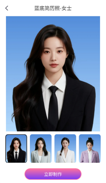 2、进入蓝底简历照页面,点击立即制作,按提示完成制作即可