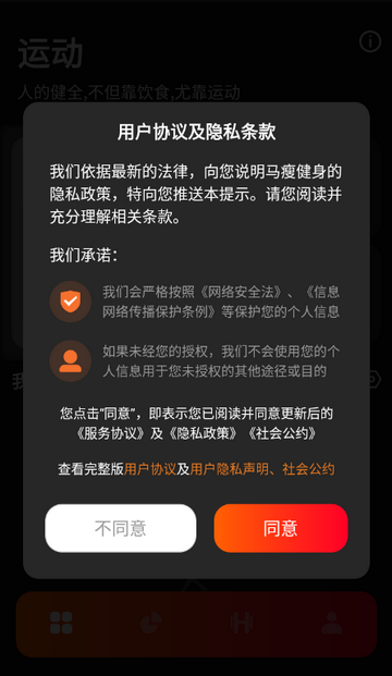 1、打开马瘦健身app,点击同意隐私政策