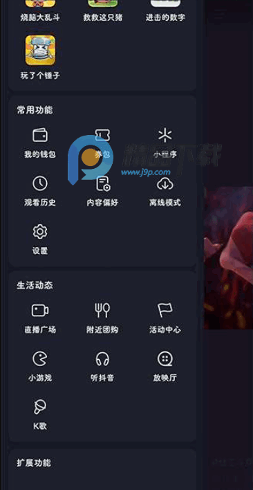 3、然后打开抖音侧边导航栏 → 底部 → 抖+设置即可。