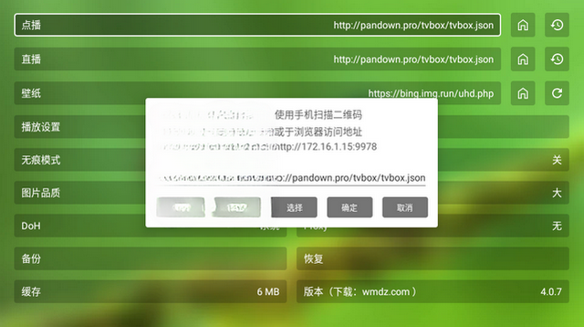 2、进入设置界面后找到【点播】栏目,在输入框中填写有效接口地址(http://pandown.pro/tvbox/tvbox.json)