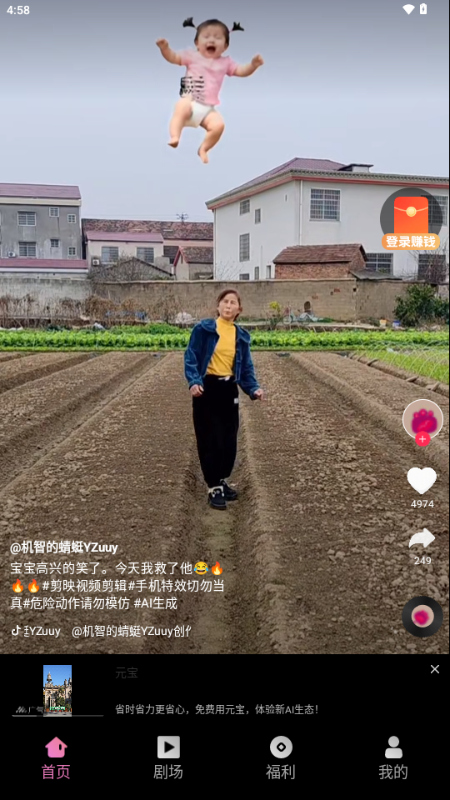 【简洁流畅】操作简单,竖屏体验,支持滑动切换、选集播放等,给你带来流畅体验。提现无任何门槛。