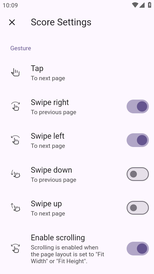 在页面设置中开启“按乐谱/曲目列表设置”,你可以为每个乐谱和曲目列表设置页面布局。