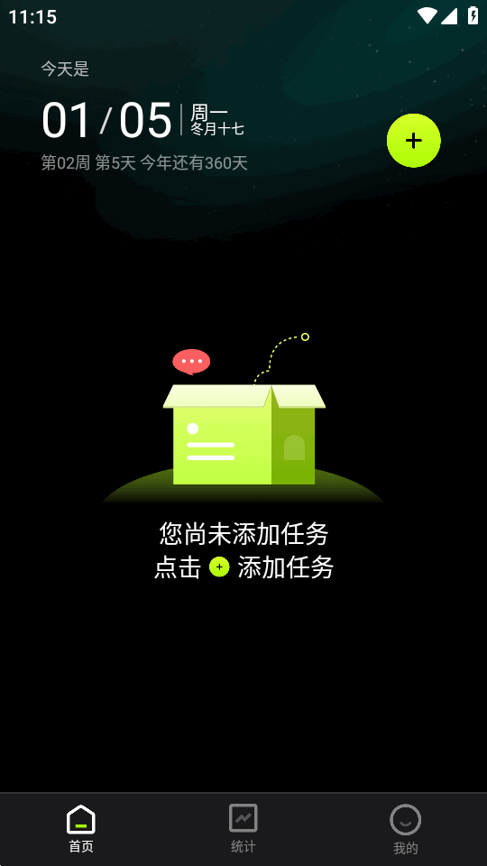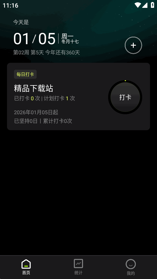 2、进入软件后,点右上角的+号添加打卡或者计划。