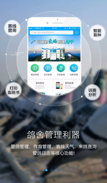 5、个性化需求适配,特别针对专业鸽舍、育种专家、赛鸽新手、养殖指导、智能提醒等不同用户群体提供差异化功能支持,满足从入门到专业的全阶段赛鸽管理需求。
