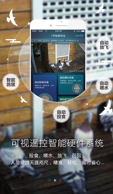 1、智能设备生态联动,无缝对接智能鸽钟、鸽舍环境监测等智能硬件,实时同步数据,实现赛鸽状态远程监控、训赛数据自动采集,打造软件、硬件一体化智能赛鸽管理体系。