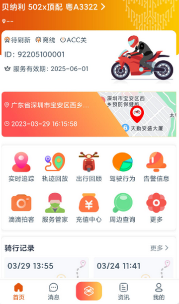 突破者是专为摩托车用户打造的一站式服务平台,核心提供全方位车辆管理服务,整合多项车辆管控功能,解决摩托车监控缺失、违规难察觉、轨迹难追溯的痛点,适配日常通勤、长途摩旅等场景,无需额外设备即可成为摩托车用户的智能出行守护助手。