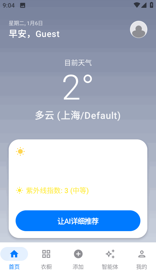 1、在首页可以看到今日穿搭提醒。