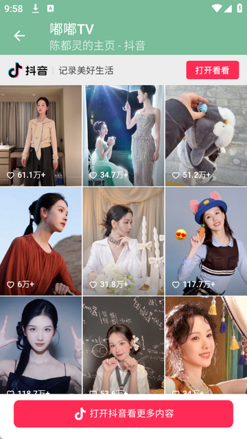 2、点击抖音可进入陈都灵抖音个人账号
